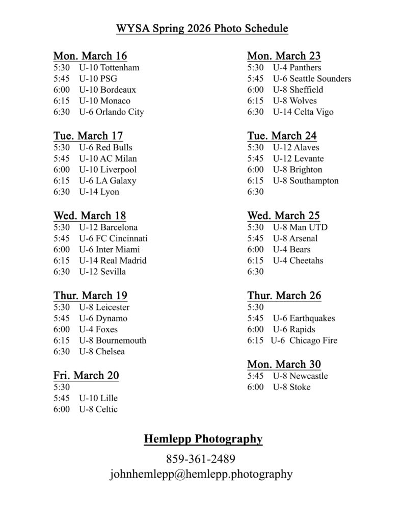 Click Here for information on WYSA’s Bluegrass Soccer Club Run by Trip Rogers